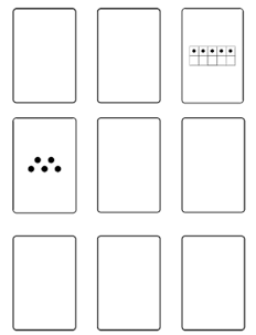 Select one or two sets of playing cards and remove numbers above your students’ comfort level. Place the cards face down in a 3 by 3 grid, with the remaining cards put in a draw pile.