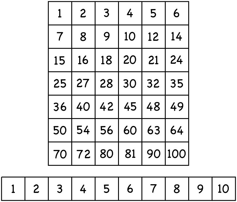 At the very beginning, the first player moves a token (which will be shared) onto any number from 1 to 9 in the bottom row of 1-9 squares. The second player puts another token (which will also be shared) on one of the bottom row of 1-9 squares, and then claims with their individual token the product in the 6 by 6 grid.