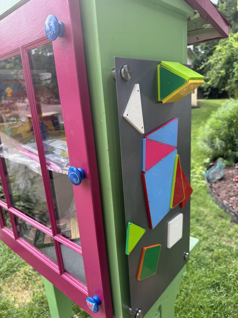 In the EFM August newsletter Jessica Breur shared her vision of a free math library, which is similar to neighborhood boxes of the Little Free Library movement. Not only does her library lend out math books and games, it also has space on the sides for communicating math puzzles, ideas, and geometric shapes to play around with.