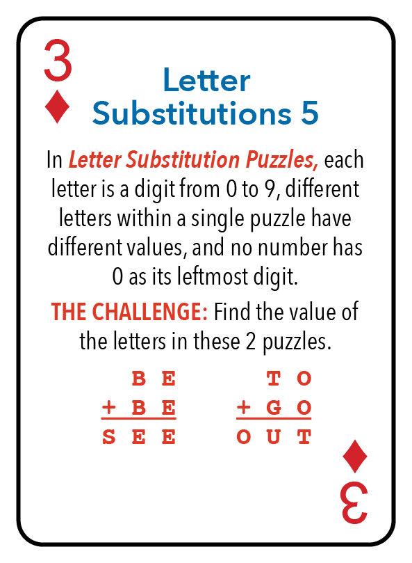 We ended our first session by picking one of the EFM puzzle playing cards from the deck for grades 2 to 5. In subsequent sessions we continued picking puzzle cards. Here are a few of the ones we played with: